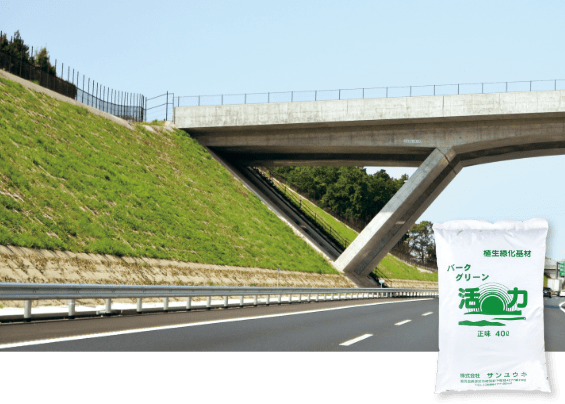 岩盤緑化⼯⽤の「バークグリーン」を提供。