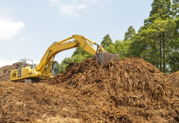 林業などで出た広葉樹や杉の⽪などを原材料にして、